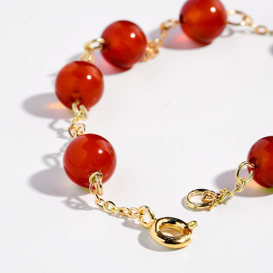 Red Agate Beaded Bracelet With 18K Plated Chain