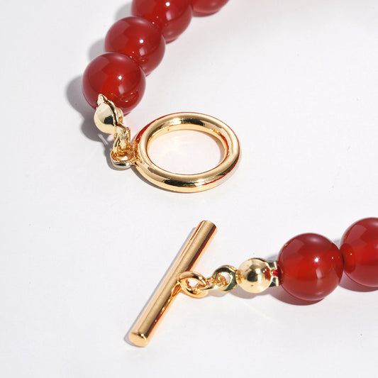 Red Agate Beaded Bracelet With 18K Plated Chain